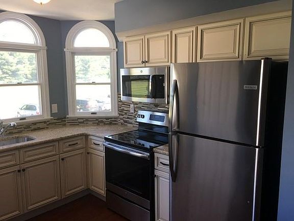 New Kitchen with soft close cabinets, granite counter tops, all stainless steel appliances. Unit includes dishwasher, refrigerator, built in microwave oven, garbage disposal. Very Large Master Bedroom with full bath, 2 very large closets, one walk in. 2nd bedroom with closet and 2nd full bathroom with stall shower. New w carpets in living room and family room, new vanity, sink and toilet in master bath, fireplace, washer/dryer, tot lot, tennis courts and basketball courts. 10 minutes to Doylestown. Tennant is responsible for all utilities, (Electric and water)