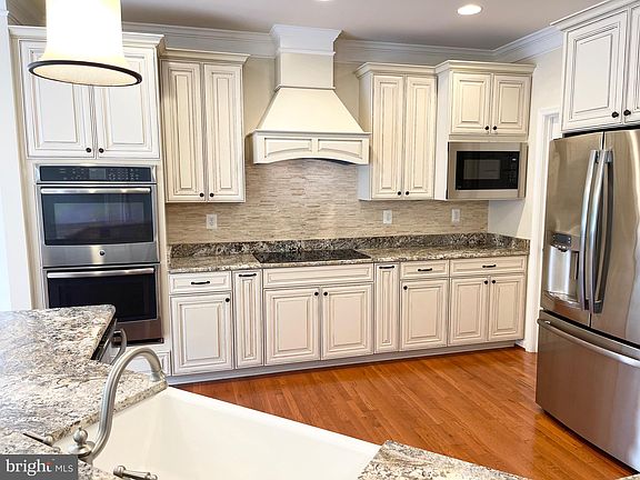 This grand classic white colonial is at the end of a quiet private lane and backs to acres of beautifully wooded forest conservation, enjoying serene views from nearly every room. Enter the two-story foyer to be welcomed by a barrel roll ceiling leading to the two-story family room adorned with a custom stone woodburning fireplace soaring to almost 20’. The upgraded 42” hearth is complete with a vent fan, integrated screen, and glass doors. A one-of-a-kind custom home design, the openness and seamless flow of this spacious floorplan is immediately evident. This expansive home shines with its light-filled spaces featuring larger bedrooms and closets, widened doorways, and increased ceiling height. There are 9’ ceilings on 1st and 2nd floors, 11’ with deep-tray in the master bedroom, and 10’ in the walkout basement — which has full windows throughout. The windows in this home are strategically placed to optimize light, serene views, and privacy. Beyond the attention-to-detail of the floorplan design, the material selections were chosen with a keen eye for quality. This home features solid oak floors and solid oak stairs, granite counters and porcelain tile in every full bath, extensive crown moldings, wainscoting, multiple archways, custom venetian blinds, and even custom wood built-ins — beautiful detail work at every turn. The gourmet kitchen is showcased by exotic-grade Brazilian granite counters and a Turkish stone backsplash. The wood-paneled cabinetry features English dovetailing, crown detailing, soft-close doors, custom pullouts and organizers for pots/pans, utensils, spices, cutting boards, etc. A double-tiered island is complete with a farmer’s sink, wood beadboard, and carved scroll detail. This classic timeless design is accentuated by the convenience of modern GE stainless steel appliances, including a state-of-the-art high-power induction cooktop with a full range hood, a double-wall oven with convection, and a counter depth french-door fridge. A spacious walk-in pantry includes an additional counter-height fridge and freezer. Off of the morning room is a recently added 20x12’ premium Trex deck… a perfect place to grill, enjoy a morning cup of coffee or a peaceful sunset. The custom royal master bath is an oasis in itself, complete with a curved glass-block double shower, and an oversized jetted soaking tub. This home is ready to be your personal staycation! Easy access to Huntingtown’s nationally ranked schools (Plum Point District, all within a few minutes) and commuting routes for DC, Andrews, Annapolis, and Pax River. Public water/sewer. Turn-key. Immediate availability.