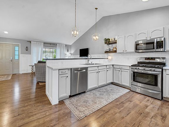- Description: Cathedral ceiling, huge snack counter, pantry cabinet, skylight, subway tiled backsplash, trendy lights, all stainless steel appliances included!