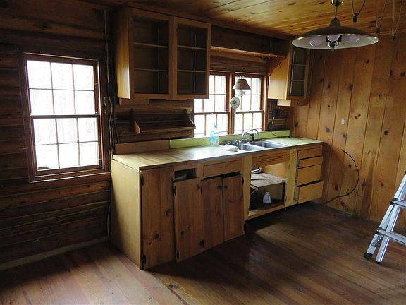163 ft. of high and dry property on Pickerel Lake with a Log Cottage, boat hoist and dock. Beautiful stone fireplace and wood burning stove. Open LR & Kitchen area. 32' X 16 ' deck. This is a charming spot, next to the boat launch. With the newer wood fence and the large stones, you don't see or hear the launch, but it's great to be able to put your boats in and out, and just walk to your dock. The home is on a septic, but there is also a community septic available through the township for a cost.