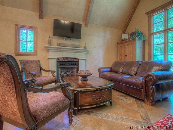 Relax in courtyard w/FP, waterfall & Koi pond of this Jack Arnold Plan on 2.27 wooded acres! Beamed & vaulted frmls w/FP. Dream kitchen w/Granite, DSC appl, pantry, island open to lvg w/FP/ Theatre rm. All bdrms w/baths. Radiant flooring, sec syst & more!