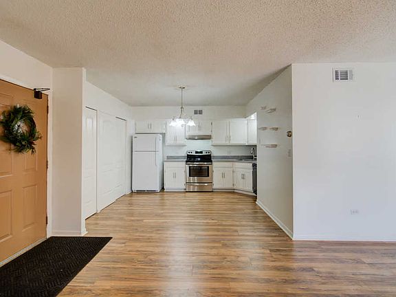 This awesome condo features 2 bedrooms, 2 bathrooms, a spacious living room area, eat in kitchen, in-unit laundry and one car garage. The kitchen is updated with white cabinets, new countertops, new wood laminate flooring, newer stove, exhaust vent and huge pantry. The in-unit laundry has a newer washer and dryer. The master bedroom has a large closet, stretching across the width of the room. The main bathroom has been updated with a new vanity, mirror and light fixture. There is a patio area off of the living room that overlooks the courtyard and fountain area. The detached garage is oversized and provides for plenty of storage. The HOA monthly fee includes water, garbage, lawn care, snow removal, and cable. This unit is conveniently located by shopping, restaurants and highway access. Schedule your showing today!