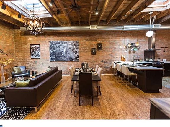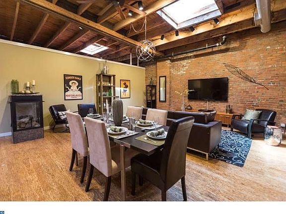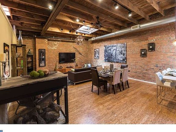 Unicorn spotted in the Fairmount/Art Museum neighborhood! This exquisite 1-story, Loft Style 2 bedrooms, 2.5 baths, with Garage and with a 38' width footprint is a rare find! Once you step into the foyer entrance you are immediately ushered into an enormous open concept floor plan with bamboo flooring throughout, towering overhead original timber beam ceilings and exposed brick throughout. The living area is swoon worthy with both a romantic element of fire with a floating fireplace and skylights that fill this space with natural light. The chef inspired kitchen is jaw-dropping and has so much functionality. We love the quartz counter tops, smartly designed flat panel cabinetry, a beverage/wine center, stainless steel appliances, goose neck faucet, undercount sink, a sexy stainless range hood, peninsula bar seating, and both orb and pendant designer lighting to top it off to complete perfection! The layout is so brilliant with abundant room for a large dining room and living space and countless options for furnishings. A convenient powder room and laundry room are tucked into the hallway. Laundry room includes a front load side by side washer and dryer and a folding center with plenty custom cabinets. The bedrooms in this home will not fail to wow you. Features such as a massive sliding barn door, built in closets, and incredibly modern touches. The 2 custom tiled full baths have features like none other such as wall mounted faucets, artisan porcelain sinks, gorgeous varieties of material from flooring to vanities, and frameless glass shower enclosures. Each room in this home features high-end custom lighting, central air, exposed duct work and offers that NYC style urban industrial appeal with full on in your face luxury upgrades! North Street literally has it all and then some and we'd love you to visit today.