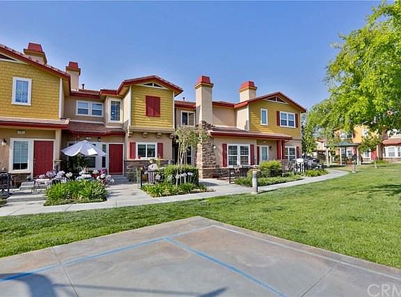 Immaculately kept 3 bed, 2.5 bath home in the gated community of Villa Valencia minutes from Loma Linda and Redlands. This beautiful home is one of the few units has an unobstructed view of the basketball court and pool from the front patio. There is a large light filled living room with fireplace and Ebony wood floors. The kitchen has granite counters, pendant lights, stainless appliances and opens to the large dining area. There is also a half bath for your guests. The wide staircase leads to the upstairs oversized master, again with beautiful wood floors and a large closet. The ensuite bathroom has dual sinks, and tub/shower. There are two other good sized bedrooms with lots of natural light and an additional bathroom and a large built-in desk area for your studies/hobbies.The garage has 220V electric. Villa Valencia is gated with a pool and Spa, basketball court, gym and community room. See our attached 3D Tour, come take a look, you will love this home.