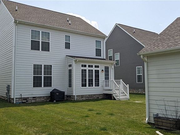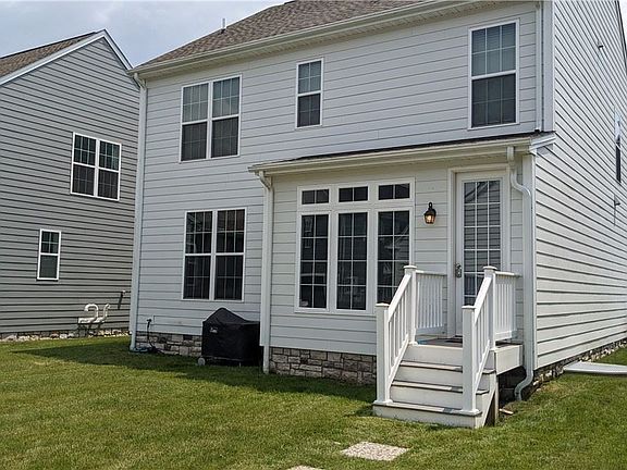 Beautiful, modern home in Hastings, The Great American Neighborhood in South Fayette, offering parks, shops, restaurants, neighborhood gym (free!), and more, all steps from your front door. Inside the home, the entry has a large storage closet and access to the formal room. Beyond the entry is an open, spacious great room overflowing into the designer kitchen and breakfast area. The kitchen features a large prep dine-in island, pantry closet, and access to the formal room. The basement is finished, with several spaces: movie theater, play/work area, under-the-stairs play space, and storage. Upstairs offers four bedrooms, 2 full baths, and dedicated laundry space, The Owner's Retreat has an Owner's Bath and a large Walk-In closet. This home comes with hardwood flooring, recessed lighting, granite countertops, two car garage with charging station, lawn care, and the possibility of renting furnished. Minutes from I-79, and The Upper St Clair Rec Center, this home is a must see!