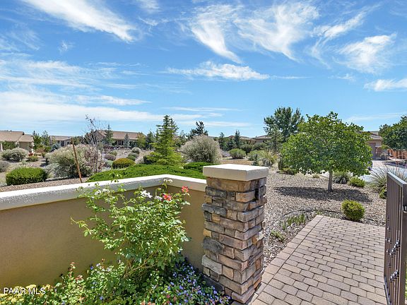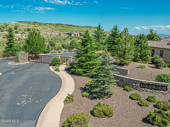 Live on the 8th hole of the Prescott Lakes Golf Course in Gated Brookside. Nestled at the end of a quiet cul de sac, this 2 bedroom/2 bath with a large den/study has been well cared for with engineered hard wood floors, updated light fixtures, and window treatments throughout. Granite countertops, alder cabinets, stainless appliances, gas fireplace, and wired for surround sound indoors/outdoors.