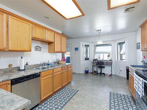 MOTIVATED SELLER! This beautiful one-story home is located on a corner lot cul-de-sac street in Pahrump, offering plenty of space with its 1-acre lot. It features 3 bedrooms and 2 full bathrooms, perfect for comfortable living. The home boasts vaulted ceilings and a kitchen with a dining nook, along with stainless steel appliances including refrigerator, microwave, dishwasher. With Luxury vinyl plank flooring in most areas for easy maintenance. The primary bedroom includes a walk-in closet and a spacious en-suite bathroom. The property also has a 2-car garage and ample space for RV parking. Washer and dryer are included as well. Well house in backyard and storage shed. Best of all, there are no HOA fees. A great opportunity for those seeking a well-rounded, functional home in a peaceful setting!