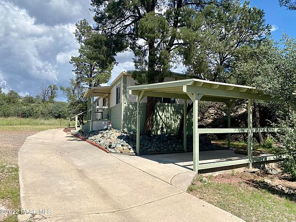 Check out this rare 55+ community opportunity in Beautiful Prescott AZ! New 2021 Roof! 2021 Furnace and A/C! Shed/Workshop also has a new roof! Fresh paint on all structures! This clean spacious home awaits you! Hiking trails to and around Willow Lake are easily accessible. The home is close to shopping, hospital and other amenities! Come enjoy the beautiful blue skies and native scenery this beautiful area and home has to offer! Lot Rent is $623 Monthly.