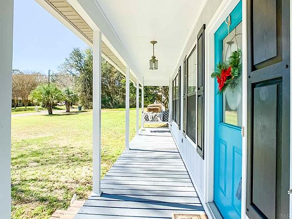 Perfect family home with an inviting front porch! This split level floor plan with a wood burning fireplace has 3 bedrooms and 2 baths and is situated on a corner lot on almost 1/3 acre. The home has been freshly painted, installed new beautiful quartz countertops and has a huge living area and a formal dining room with built-ins. Large master bedroom with barn doors to the master bathroom. New eco-friendly toilets recently installed. The over-sized 2 car garage has a side entrance. There is a 50 amp service to accommodate a large RV. This great house is close to all the conveniences on 9 mile road, yet in a tranquil, peaceful setting. Only 5 minutes from UWF and 15 minutes from Navy Federal. Don't wait on this great home! Call to schedule a tour quickly. the portable shed and portable fireplace in master bedroom does not convey.