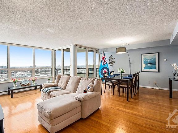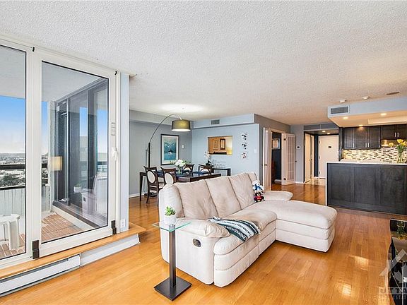 Very special condo in sought after location boasting spectacular unobstructed views and superb layout. Updated windows + patio doors provide unbelievable sweeping sightlines downtown and beyond to the Gatineau hills. Sunsets are jaw dropping every single day. Unit 2701 has been tastefully updated w hardwood, custom blinds, a very modern kitchen featuring waterfall breakfast bar, quartz counters, tile, custom cabinetry and stainless appliances. Located on the 27th floor it has Penthouse level marble flooring. Formerly a two bedroom featuring an open concept living space incl a bright living and dining area with a balcony, fabulous oversized kitchen, office/den space/spare bedroom, big laundry, storage area, mechanical room, and powder rm. Larger master bedroom features double closets, ensuite bathroom and expansive views of the Rideau river. Best amenities in the city with tennis, pools, gym, manicured grounds. Fantastic location allows you to walk downtown, use LRT, ride the paths.