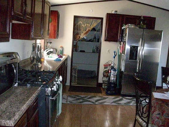 Completely renovated manufactured home at Rock Creek. Three bedrooms and two bath rooms. New stainless appliances in the kitchen. Open floor plan. Large deck with a view of the lake.