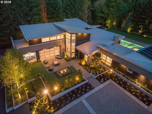 Olson designed a modern masterpiece on a sun-filled private acre in Dunthorpe. True entertainer's home with grand-scale rooms. Selective use of concrete, black walnut trim details, smooth wall finish, large gourmet kitchen with solid surface counters, and cook's island. Resort-style master bedroom retreat on the main level with art wall, stunning glass windows, his and hers closets, and 6 piece spa bath. Modern poured concrete staircase enclosed in the glass leads up to three full bedroom suites with bonus flex space. The lower level offers a custom wine cellar, professional home theater, and full gym with access to the sports court. Stunning outdoor space with a covered full kitchen and living area, professionally hardscaped with 20 X 45' solar heat saltwater pool, built-in the poured concrete fire pit, and level yard. The site allows for parking of over 25 vehicles, including a 6 car garage. Smart home design with 8 zones radiant floor heating, air conditioning, home video monitoring, integrated sound thru-out, 400 amp service, and whole-house sprinklers. No maintenance living with steel beam construction, 50-year metal roof, fascia, and soffits. For more information about this property contact the owner, Mr. Ruben Sander, via email: saruben294@gmail.com.
