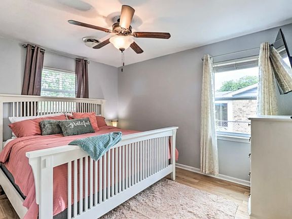 If your travels bring you to Killeen for work or pleasure, this charming 3-bedroom, 1-bathroom rental is suited for a relaxing stay. With Smart TVs throughout, a big backyard with a fire pit and a sitting area, and a kitchen with everything you will need to make a delicious meal at home, this bungalow is perfect for your stay. This property is not only located close to Fort Hood, but also near nature trails and Summer Fun Water Park ensuring fun for the whole crew!