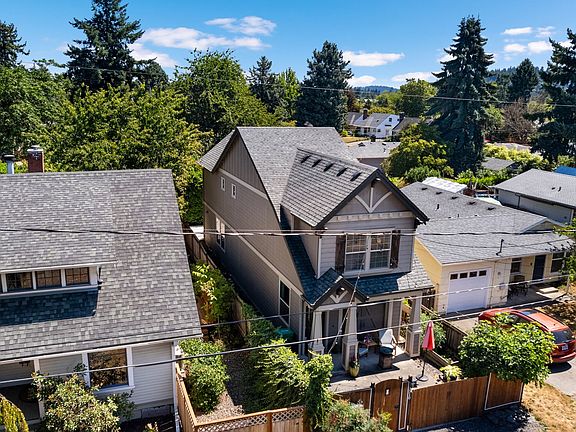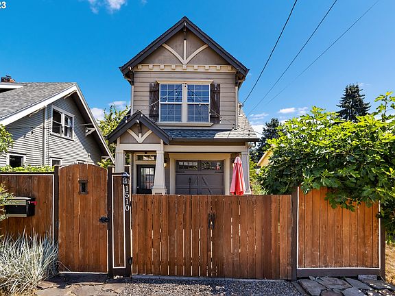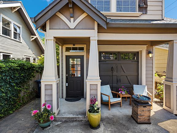 Lovely curb appeal in Montavilla thanks to thoughtful design and a pretty fenced yard offering privacy and charm. Inside the gate a lovely courtyard awaits with large patio perfect for hosting BBQs. Delightful open layout inside featuring impeccable details. Living room has bamboo floors, an inviting gas fireplace, crown molding throughout, and plenty of natural light. Modern kitchen with bar seating, granite counters, stainless steel appliances, and a door out to the backyard. Airy upstairs thanks to soaring vaulted ceilings. Great loft-like bonus space between the three bedrooms could be a family room, play area, and so much more. Sunny primary bedroom offers a custom walk-in closet and en suite bathroom. Another bathroom conveniently located down the hall, plus a half bath on the main. Nice-sized backyard designed with a Palm Springs mid-century feel. The lot is a fruit lover's paradise with mature fig and apple trees, plus berries! Attached garage. All this just an easy jaunt to the great dining and shops on Stark. [Home Energy Score = 8. HES Report at https://rpt.greenbuildingregistry.com/hes/OR10196895]