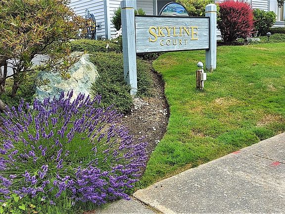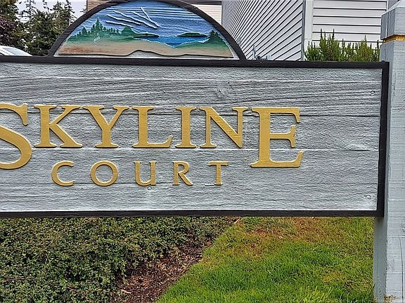 Come take a look at this sun filled, single level, end unit condo in Skyline Court! Two bedroom with primary bath off primary bedroom. Another 3/4 bathroom across from second bedroom. Open floorplan with a cozy gas furnace in the living room. Slider off the living room opens up to a lovely patio with a storage room for extra storage. Single car garage included with this condo! Beautiful Tug Boat Park and the water are nearby, don't miss this one!