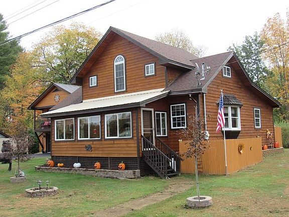 The main home has 3 bedroom, 2 bath home has been completely redone inside and out. The home is beautiful with big beams and knotty pine walls.There is a main floor bedroom, bath, laundry, 2 enclosed porches,open kitchen, dining,large living-room, automatic generator,central air, automatic blinds, full basement and a side yard big enough for a second garage. The home has so much character that you really have to see it to appreciate it. The new raised ranch above a 2 car garage is a little more contemporary and has never been used.Includes a machine shop and attached shed. The raised ranch has a great room, one full bath, master bedroom, walk-in closet,balcony deck, back deck with stairs and inside stairs to the garage.Automatic generator and central air. Side patio for grilling and relaxing.These two homes are being sold together as you see them. Just bring your suitcase and enjoy... or rent one out and use the other.