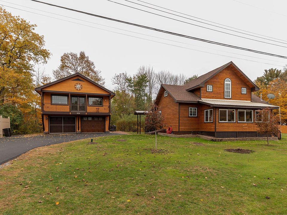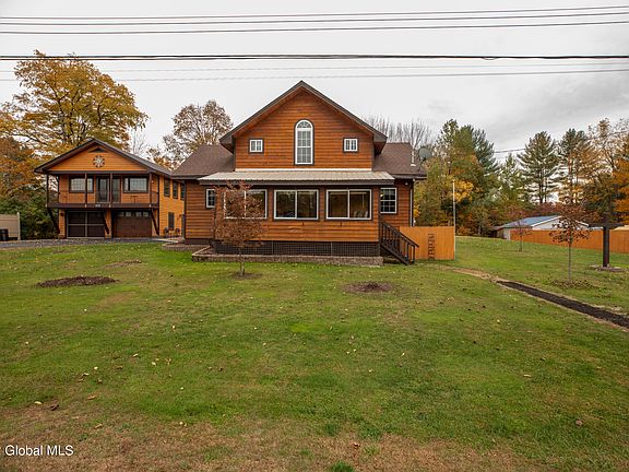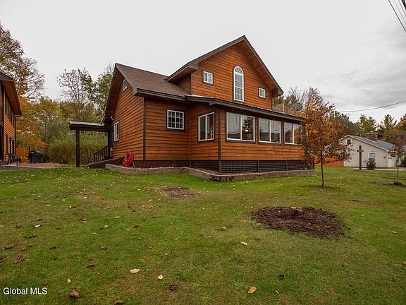 Here is your chance to own a part of the Adirondacks! Currently a year round residence, this 3 bedroom/2 bath home with rustic woodworking throughout would also make a great getaway or vacation rental property. The 1 bed/1bath apartment with kitchen and separate septic above garage offers additional rental income opportunity. This home with a/c offers 1 bedroom/1 bath with walk-in tub and laundry area on main floor. Upstairs is 2 bedrooms and full bath. Enjoy mountain views from enclosed front porch or summer evenings on the screened in porch on the back. Two car finished garage with a separate bay that a fits ride on lawn mower. Direct access to snowmobile trails and walking distance to public beach.