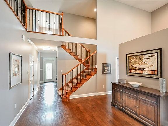 Exceptional carriage home with luxurious appeal. This extensive home offers 3 levels of perfection. Formal living room with beautiful hardwood floors and plantation shutters. Family room with stone fire place, bright Dining room and outstanding kitchen. Stainless steel kitchen appliances include wall oven, additional wall oven/microwave combo, gas cook top, range hood, dishwasher and refrigerator. First Floor Master Bedroom with tray ceiling offers on suite bathroom, walk in glass door shower, double vanity, soaking tub and the walk in closet. Upstairs with great views from the wrought iron baluster staircase offers 3 ample size bedrooms with palladium window, walk in closet and Jack and Jill bathroom. Finished lower level with two full sliding doors to the outside patio features gas fireplace, wet bar, full bathroom and finished storage room. Rear composite deck with awning. Hardwood floors throughout the main level. First floor laundry with laundry sink and large pantry.