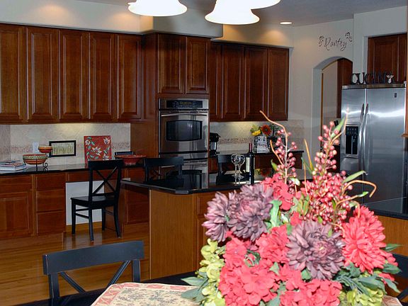 Gorgeous Meadow Mountain Home! Beautiful mountain views from very large covered porch & upper level. Home boasts 5 bedrooms, 5 baths & 5,195 finished sq ft. Great main floor layout. Extensive hard wood floors throughout. Large kitchen has granite, stone back splash, stainless steel appliances, island & butler's pantry. Large office/den with built-ins. Master suite has plenty of room with a large bathroom & very large walk-in closet sure to have room for all your clothes & shoes. Mini master & bath also have access to the loft. Two additional bedrooms up with a full Jack-N-Jill bath. Basement has a nice great room, for relaxing or entertaining with a wet bar/kitchen area including sink, microwave & two refrigerators. Basement has a large bedroom great for kids, workout room or guests with it's own bath. If you prefer the outdoors, you will enjoy the professional landscaped front & backyard with flagstone patio or the many parks in the area. Close to schools.