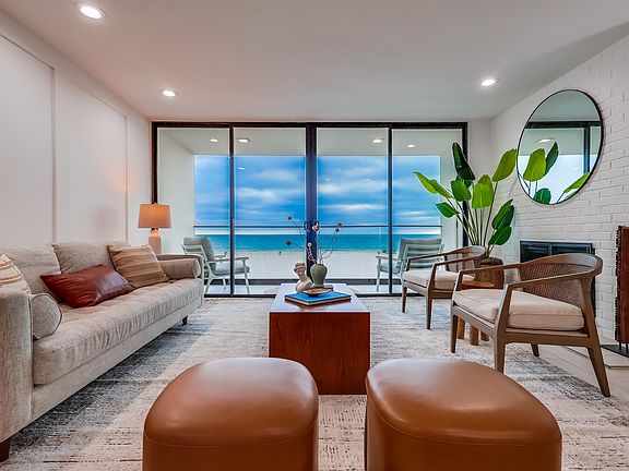Pet Friendly Coastal Luxury on The Strand! Experience beachside living at its finest in this rare, 2-story penthouse along The Strand in Hermosa Beach. Enjoy unobstructed panoramic views of the Pacific Ocean and coastline from nearly every room. The spacious primary suite offers a private ocean-facing deck, while the open-concept living, dining, and kitchen areas flow seamlessly to a second private deck ideal for entertaining. Both bedrooms feature walk-in closets and custom cabinetry, with a private laundry room situated between them. Modern upgrades include central A/C, new finishes, recessed LED lighting, and sleek, contemporary design throughout. Additional highlights include a gated subterranean garage with two side-by-side parking spaces, private storage, and access to a beautifully maintained 90' common area patio for entertaining or relaxing outdoors. Just steps from the Hermosa Pier, fine dining, shopping, and Noble Park, this is a once-in-a-lifetime opportunity to live the dream in an iconic oceanfront residence.