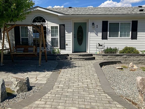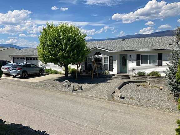 Rare find! This well kept manufactured home not only has a double attached garage but also space to park 4 cars in front. Stamped concrete and brick path to front door give this unit lovely street appeal and keeps the yard maintenance to a minimum. You get a beautiful Shuswap lake view any of the main living areas inside the 1500 sq/ft 3 bedroom, 2 full bath home that stays comfortably cool in the summer thanks to central air. The lake side of the home backs on to a large green space that is the septic field for the park. In the back yard you'll find the ultra private covered deck, a raised planter and storage shed that are surrounded by zero maintenance toppings, no lawn to mow here! If you want to use the garage for crafting or woodworking you will love the added bonus of the extra full size garage door that opens on the lake side, great for extra air flow and added natural light.