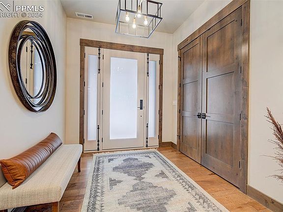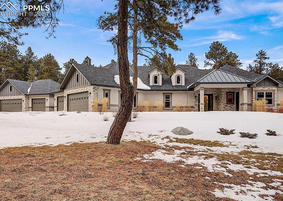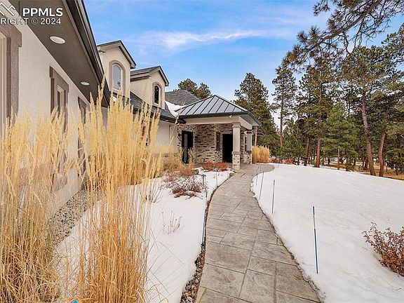Welcome home to this open concept Ranch home on 2.51 treed acres in the Hilltop Pines. This award winning property was featured in the 2018 Parade of Homes! The curb appeal of this property is remarkable with it’s professional landscaping and stunning stonework. Once inside, you are greeted by tall ceilings & surrounded by exceptional quality. The kitchen is equipped with Dacor appliances. The island features functional cabinetry on all sides & a single basin Blanco sink. Upper cabinetry stretching to the ceiling & walk in pantry provide an abundance of storage. The generously sized dining area features built in buffet style cabinetry. In the living room you’ll find beams with custom lighting as well as a horizontal gas fireplace with customizable heat settings, floor to ceiling tile work and a beautiful mantle. Step out through the sliding door to the covered patio surrounded by trees for privacy & featuring a gas fire pit as well as a gas line for a BBQ. The primary suite has a door for patio access & wiring for a mounted TV. The 5 piece adjoining bathroom with soaking tub, zero entry shower, dual vanities & a private water closet. The flex space is perfect for an office or gym. The walk-in closet has a custom closet system & is attached to the laundry room equipped with utility sink & pre-plumbed for a hot/cold water dispenser. Laundry can also be accessed through the mudroom which has a built ins & large storage closet. On the opposite end, there is a powder room & 2 additional en-suite bedrooms. The 1st bedroom has a walk-in closet & 3/4 bathroom. The 2nd is a Casita with exterior access to the front of the home, a kitchenette, a large closet & a full bathroom. The oversized six car garage has multiple storage closets, ceiling mounted shelving, hot/cold water supply, multiple 220V hookups & gas heater. Additional features include: water filtration system, radiant heat, forced air, AC, hardwood floor & tile throughout, no steps & professional irrigation system.