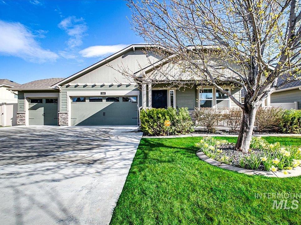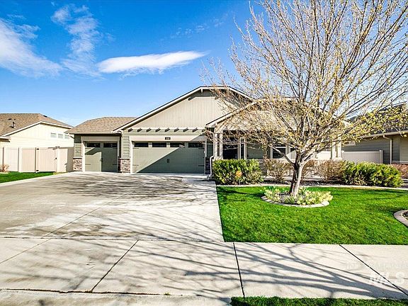 This beautiful, single level, open concept home will not disappoint! From its split bedroom design leading off of the grand entryway to its covered patio, redwood deck and larger than normal 3 car garage, you'll be sure to find many spaces to enjoy or entertain in. The kitchen shines with its real hardwood floors, birch cabinets, granite countertops and gas range stove. The home is also equipped with brand new carpet throughout with foam underlayment for durability and comfort. The master suite includes a large walk in closet, dual vanity sinks and brand new tile shower. The third bedroom with its beautiful french doors could also double as a home office which includes plenty of natural light. Enjoy early mornings or evenings on your deck, covered patio or in the privacy of your fully fenced backyard. Access to the backyard can be found through the garage backdoor to avoid stairs if needed. This home is in a prime location with Lake Lowell, Red Hawk Golf Course, groceries and medical services nearby.