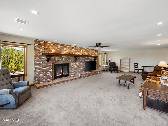 Discover the perfect blend of privacy, and convenience in this exceptional 9.5-acre estate, ideally located just minutes from downtown, schools, shopping, and restaurants. This property is a rare gem, offering endless opportunities for hobbies, recreation, and relaxation.The centerpiece of this estate is a beautifully designed 2,693 sq ft main house, the main level features a gourmet kitchen equipped with granite countertops, a wall oven, a warming drawer, and sensor-activated toe kick lighting. The floor plan is perfect for both comfortable living and entertaining, with large windows that showcase the stunning views of the San Francisco Peaks and P Mountain.