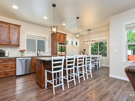 Nestled in utmost privacy, this magnificent 4 bedroom, 3 bath residence offers incredible luxury and comfort. Boasting two suites, this home is perfect for multi-generational living or hosting guests in style. Step inside and be greeted by the timeless elegance of wainscoting, granite counters and stunning natural wood cabinets that grace this well-appointed home. Entertain effortlessly in the spacious living areas, complete with a cozy fireplace for those chilly evenings. The backyard oasis beckons with its zero maintenance design, featuring a tranquil waterfall and a charming fire pit creating the perfect ambiance for relaxation and gatherings. Whether you seek solitude or socializing, this home has it all. The garage features three bays with durable epoxy floors offering easy maintenance. The built-in heater ensures a comfortable temperature year-round, while the versatile space provides room for vehicles, a workshop, or additional storage.