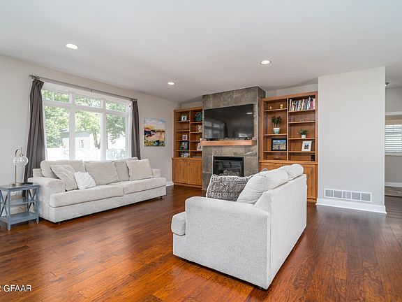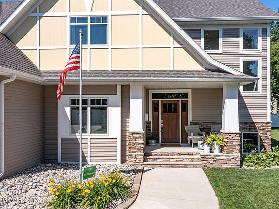 Incredible two story home custom built by Affinity in 2013. This beautiful 5500+ sq ft home is tucked into a wonderful South Grand Forks location close to the Greenway and Lincoln Park surrounded by mature trees on a nicely landscaped lot. Main floor has an open floor plan perfect for entertaining with a large dining space, living room with gas fireplace and built-ins, kitchen with granite counters and SS appliances, wonderful sunroom off of the breakfast nook, large mudspace off of the insulated/heated 3 car garage, 1/2 bath, and nice office space that could be a main floor bedroom if needed. Upstirs features a huge Primary Suite with walk-in closet, giant custom tiled walk-in shower, dual vanity, and access to laundry just across the hallway; 3 additional bedrooms, 2 additional full bathrooms, large bonus space which could be a fifth upstairs bedroom, and two large storage/linen spaces. Downstairs is a blank canvas and is ready for your creative ideas. It is "roughed in" for a fifth bathroom and could be currently used for kids to play, a large hobby area, storage or whatever you dream up. This home has brand new engineered hardwoods on the main level, steel siding, Anderson windows, 2 furnaces and A/C units, an air exchanger, cabinetry/fridge/freezer in the garage, a fantastic patio with built in fire pit in the backyard, and dazzling curb appeal. Life is short-check this one out today!