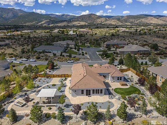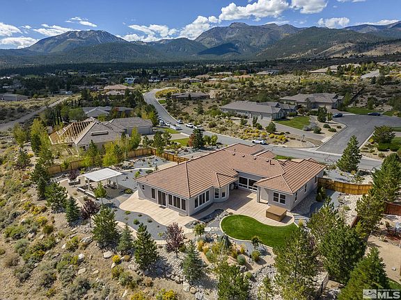 Welcome home to The Estates at Mount Rose! With breathtaking mountain views and conveniently located just 25 minutes from epic Lake Tahoe, this single-story, premier home boasts a glamorous layout with 4 bedrooms on separate wings, 4 bathrooms and plenty of storage for modern family living. The master bedroom features his and hers walk-in closets, an elegantly remodeled bathroom with separate vanities, an oversized shower with dual shower heads, and a door that opens to the serene backyard patio. The kitchen opens to the family room with a gas log fireplace, high ceilings and gorgeous views from every angle. Large granite slab countertops line the kitchen with stone backsplash, top of the line GE Monogram appliances, gas cook-top with infrared warmer, and a full pantry. The home is highlighted by pristine, custom landscaping with designer paver walkways that lead to the powered, Aluma Wood pergola where you can enjoy breathtaking views of Mt. Rose. Enjoy your morning coffee or a glass of wine at sunset, surrounded by the irrigated raised garden bed, diverse trees, and the serenity of the flowing water feature and hot tub. The oversized garage is fully finished, comfortably fits 4 cars with custom storage. Other notable features include RV parking gate, enhanced drainage, dry creek bed and french drains, top-of-the-line Carrier A/C Units, and new whole house water filtration system with softener.