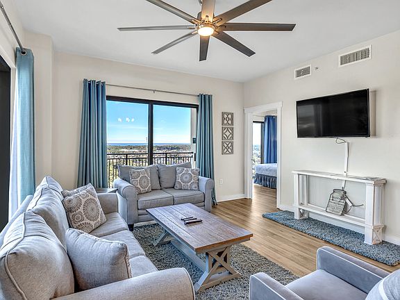 Welcome to your dream coastal retreat! This beautifully renovated 3-bedroom, 3-bath condo offers breathtaking PANORAMIC VIEWS stretching from the Bay to the Gulf of Mexico. Each generously sized bedroom features its own private balcony access, walk-in closet, and ensuite bathroom for maximum comfort and convenience. The open-concept living area is perfect for entertaining, with a large picture window showcasing captivating west-facing views of the Gulf. Step onto the balcony to enjoy stunning sunsets and feel the gentle Gulf breeze. The well-appointed kitchen boasts quartz countertops, a spacious island, and stainless steel appliances, ideal for both casual dining and entertaining.Additional highlights include luxury vinyl plank flooring, a master bedroom sitting area with sunset vistas, and ample closet space. Origin at Seahaven offers a LUXURIOUS LIFESTYLE with top-tier amenities such as a resort-style pool on the 4th floor overlooking the Gulf, a sunset deck, a theater room, game room, fitness center, sauna, PRIVATE DEEDED BEACH ACCESS, covered garage parking, 24/7 security, and convenient grill and picnic areas. Enjoy the convenience of being within walking distance to locally owned restaurants, bars, and shops, with Pier Park's shopping, dining, and entertainment just a short distance away. This condo is offered fully furnished and turnkey ready, providing you with the ultimate opportunity to experience coastal paradise immediately. Don't miss out on this exceptional opportunity to own a slice of Gulf Coast heaven!