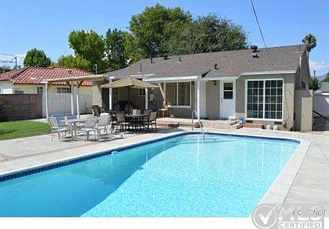 Beautiful POOL Home in a great Mission Hills neighborhood. This home has 3 ample-sized bedrooms and 1.75 baths. Adjacent to the kitchen is a gorgeous living room with a beautiful marble fireplace. In the backyard you will find a sparkling pool as well as a large grassy area, AND a beautiful covered patio area for all your entertaining. This home has many great features, including an upgraded kitchen with newer cabinets and granite countertops, copper plumbing, double pane windows, updated electrical panel, newer roof and much more. Stainless steel appliances are included in purchase (Stove, refrigerator,dishwasher and built-in microwave.) (property was remodeled a few years ago)