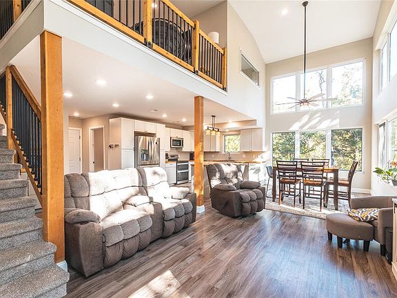Escape to modern living with this stunning 3 bed, 2 bath home nestled on 10 secluded acres, built in 2021. Featuring a contemporary design, this home is filled with natural light, thanks to its floor-to-ceiling windows and open floor plan. Luxury vinyl plank flooring spans the main level, blending style with durability. The property includes 4 fenced acres and borders the beautiful Mark Twain National Forest, offering a perfect balance of privacy and nature. Enjoy sustainable living with solar panels and unwind in the great outdoor space, complete with a huge covered patio and cozy firepit—perfect for entertaining or quiet relaxation. Your serene retreat awaits! Mobile Home is in the process of being removed. Shipping container is negotiable
