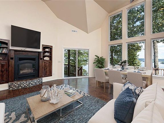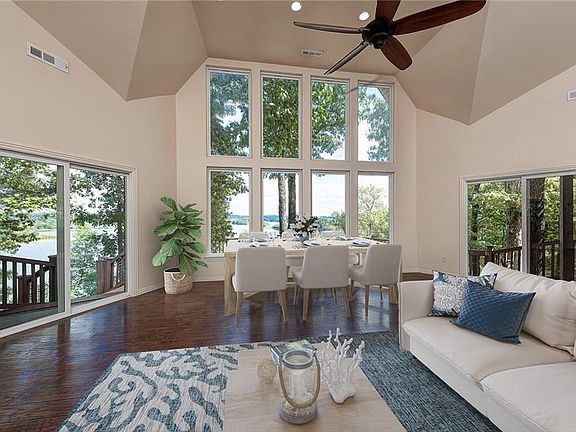 Breathtaking Beaver Lake view from every room of this beautiful custom home! Nestled on 5 acres, this home features grand 22ft high cathedral ceilings and windows, open floor concept, custom cabinets, granite, stainless steel appliances and more- perfect for entertaining! The 3 bedrooms have their own access to the large back deck to enjoy the view! The home also boasts an 11 person sauna, so you can relax after a long day at the lake! Enjoy the outdoors with a large fire pit, stairs leading down to the lake for swimming, fishing, canoeing and more!