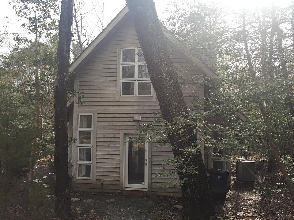 Two -story guest house on 5 acres of forest . Spiral staircase , clean open space , lots of windows, huge circular window in rear, surrounded by nature Renter pays for electric and propane ( for stove).