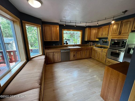 Craftsman's paradise! Move-in ready, Alaskan dream home with mother-in-law suite features high quality upgrades, vaulted ceilings, an open floor plan, tons of built-in storage, and custom woodwork throughout in mahogany, hickory, cedar, pine, Douglas fir, and locally-harvested birch.Home owners have dedicated 20+ years to sprucing up every aspect of this Hillside gem with a focus on warmth, energy efficiency and independence. All of the major remodeling and improvement projects are done. Large, private lot with greenhouse, fully fenced back yard and garden in a quiet Rabbit Creek neighborhood just above Elmore feels like tree house living! Your family will enjoy 4 beautiful bedrooms, 3 full baths, 2 kitchens, and a spacious main floor that is great for entertaining. The third floor is entirely dedicated to the master suite. Mother-in-law suite has excellent potential for extra income! Driveway was paved in 2020 with a contoured brick retaining wall includes an extra reinforced concrete parking pad alongside the house for RV, boat, etc.