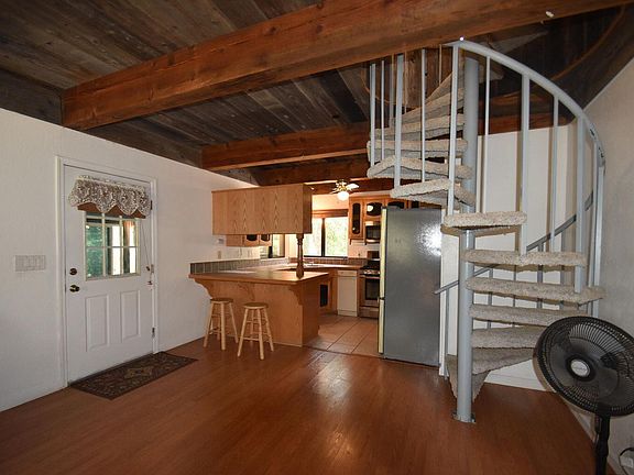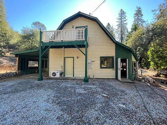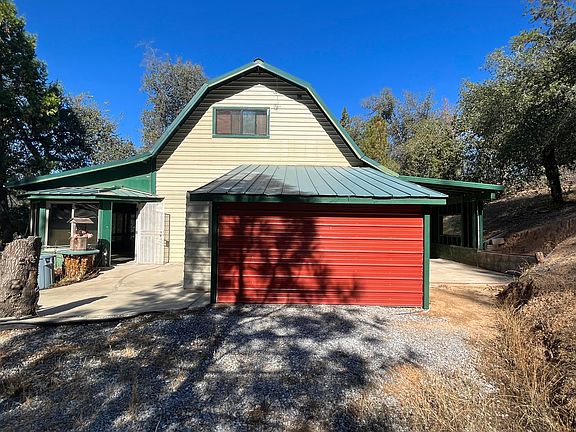 Cute park like ,Secluded , top of the hill home on 9.9 acres. 2 Bed 2 Bath-Two -story-home with views. Updated bathrooms.large living room. One bedroom and bathroom at first floor. second floor loft may turn into two bedrooms . Over sized detached Garage. Plenty rooms for parking R.V.'s, Boats~ . In addition , Attached 16 x 32 RV Carport, Detached Carport, + out buildings. Metal Roof, Interior Fire Sprinklers, tankless water heater. Mini split . . Must see.