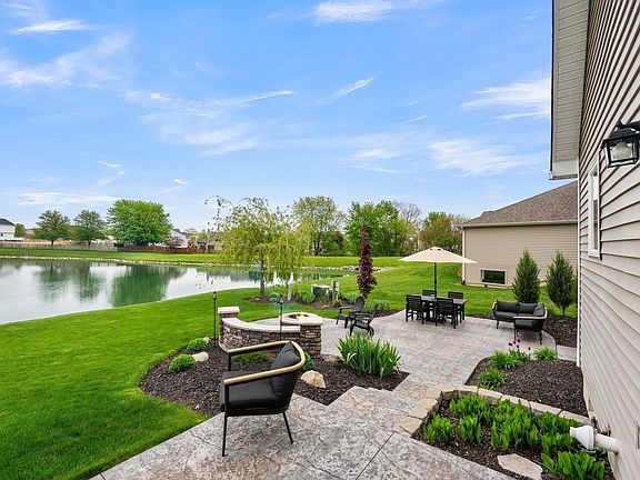 Offer accepted. Contingent on closing. Stunning 3 bedroom, 2 full bath, 2 half bath home built in 2007 with a range of new updates and stylish features that will take your breath away! This impressive home boasts an idyllic location on a pond, providing a peaceful and picturesque setting that's perfect for enjoying nature and relaxing. The stone patio area and firepit is the perfect spot for entertaining guests. The owners suite on the main level is spacious, providing a private retreat that's perfect for unwinding after a long day. Luxury vinyl plank flooring throughout the home adds a modern touch, and easy to maintain. The vaulted living room ceiling creates a sense of openness and space, making the room feel bright, airy, and welcoming. The updated home office can be converted into formal dining. The finished basement with a half bath provides great additional space for entertaining, while also offering plenty of storage. This basement is plumbed for a full bar. The beautiful landscaping adds to the home's overall appeal. With a brand new roof and dual stage gas furnace, that's one less cost to have to take on.