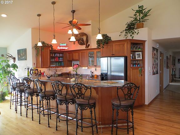 Private mountaintop retreat surrounded by BLM timberland. Incredible wildlife, miles of roads/trails. Hunt, hike, ride ATV's & horses. Custom built to entertain large groups, for extended stay, with ease & elegance. Gourmet kitchen, full bar, 8 burner gas stove, convection ovens & warming drawer. Giant windows frame an amazing view, with custom hardwood, granite, tumbled stone. So much to take in!