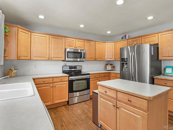 Welcome to this modern home that sits on a corner lot in the Buffalo Run neighborhood! Once inside you will notice the luxury vinyl plank flooring through the main floor and upstairs bedrooms. This is a great home for entertaining with an open floor plan. Boasting with vaulted ceilings and lots of natural light. The kitchen features oak cabinets, stainless steel appliances, tile back splash, center island, and pantry. The primary bedroom is complete with a walk-in closet and 5 piece master bath. Three additional bedrooms and a full bath complete the upper level. Enjoy the large backyard with a patio and brand new pergola that was just built this past summer. The exterior was painted in 2022 and has a concrete tile roof giving the home wonderful curb appeal. This home truly shines with updated lighting and hardware throughout. The HVAC system and A/C unit were replaced in 2020. Smart features including smart lock at the front door, nest doorbell, nest thermostat, and smart light switches on the main floor. Near Buffalo Run Golf Course, 20 min to DIA, near I-76, 1 block to Stampede Park.