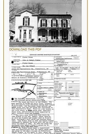 The two-story frame section, the side that faces Old Taylorsville Road, was built in 1879. At this time the house was re-oriented to face Old Taylorsville Road but we still enter from the original house today, from the original entrance facing Taylorsville Road. We envision, at one time, there was a driveway on the other side of the house which became the front where you will find another porch and a bay window that is east-lake style trim and proje supported by brackets above the windows. The brick wing could have been built by John Fisher or his son Robert Fisher in about 1834 or 1835. In 1834 the Fishers purchased the land on Floyds Fork, including a mill which had existed since 1823. John Fisher died in 1845 and Robert Fischer continue to operate the flour mill and the sawmill until his death in 1850. In 1854 the house was purchased from Robert Fisher's estate by Dr. Stephen H. Reid. The Fisher family name was given to the small village of Fisherville. Robert Fisher owned the land on both sides of Taylorsville Road where Fisherville grew by the time of his death in 1850.