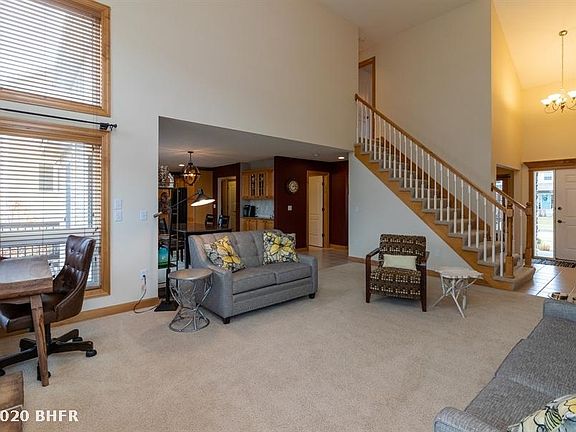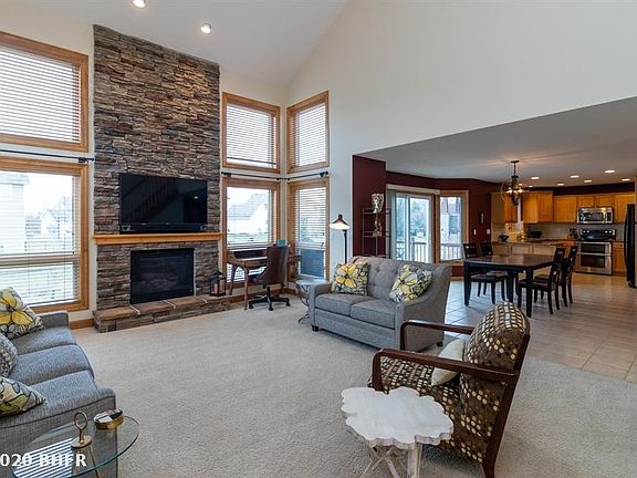 This home defines the benchmark for exceptional living Soaring cathedral ceilings are highlighted by floor to ceiling fireplace stone & windows in the great room. This then flows into a beautiful maple kitchen with granite tops, pantry, built in hutch & stainless appliances. The ground floor master bedroom is a wonderful retreat with vaulted ceilings, huge walk-in closet & an en suite bathroom featuring a double vanity, shower & bubble tub. Upstairs you will find 3 large bedrooms & an additional full bath. Irrigation & central vac are both nice bonuses. The lower level has an incredible bar area, ready to entertain, plus a theatre style rec room & one of the coolest barn doors you'll see. It separates a bonus room that can be a 5th bedroom, workshop, office & more. The yard is professionally landscaped & features a fully fenced back yard, large deck & paver patio below. Located in the Waukee school district, this home will be in demand. Take a tour today