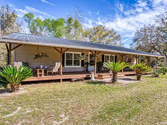 A true one of a kind 6.37 acres with a combination of pasture, trees and an old phosphate pit with ancient Oaks and Magnolias. Whispering pines line your driveway to a Manufactured home. Don't let the age fool you, its had a total make over. Metal roof over, hardy plank siding, some newer windows, full length covered front porch, covered back porch. Interior has fresh paint and carpet and new refrigerator. Owner will consider selling furnished. Convenient country location just south of High Springs on paved road SR 45/41. Easy to see just call listing agent.