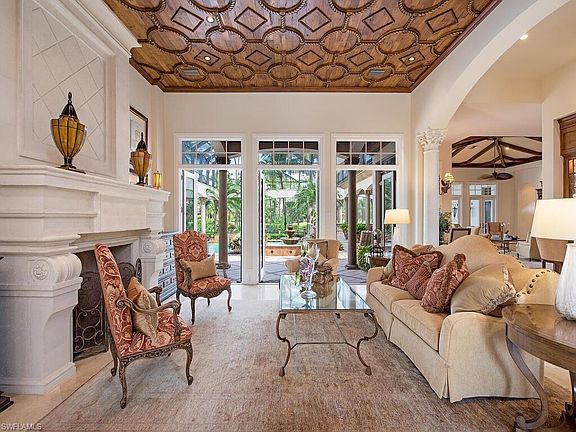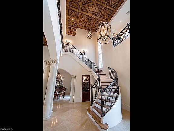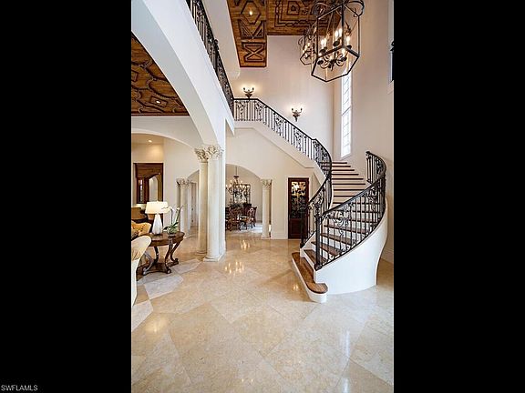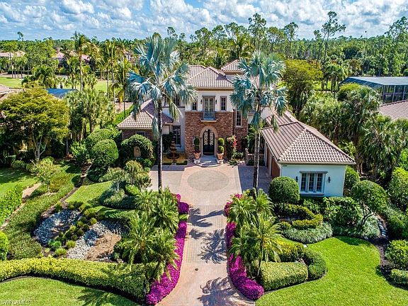 PRICE REDUCTION! NO WAITLIST TO JOIN AS A FULL GOLF MEMBER WITH THE PURCHASE OF THIS HOME. This lavish two story 4 bedroom plus den, 4 full and 1 half bath estate is the perfect blend of luxury and comfort. A grand foyer entry with a stunning spiral staircase welcomes you to this expansive estate where you will find captivating and intricate wood ceiling details punctuating volume ceilings, extensive windows, majestic columns, Juliet balconies, full wet bar and wine cellar, private elevator and rich marble and wood flooring throughout. The spacious second story boasts a lovely gathering area and private guest suites. Enjoy outdoor living and entertaining in paradise on the expansive multi-level lanai featuring an outdoor summer kitchen, a romantic gas fireplace and several comfortable seating and dining areas. A gardener's dream awaits on the professionally landscaped lanai, highlighted by stunning landscaping and a sparkling pool with cascading spillover spa. Home Generator.