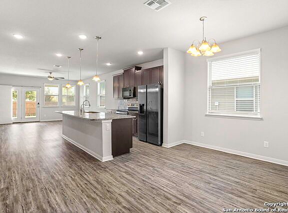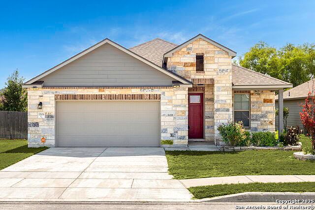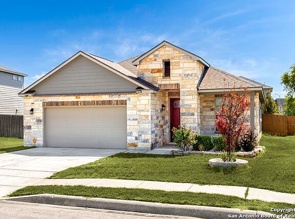 Welcome to your new haven in the picturesque community of Falcon Landing. This beautifully updated single-story home boasts 3 spacious bedrooms and 2 modern baths, offering comfort and style in every corner. Step inside to discover large bedrooms, each equipped with ceiling fans to ensure your comfort year-round. The heart of the home is the contemporary kitchen, featuring elegant granite countertops and stainless steel appliances, including a refrigerator that will delight any culinary enthusiast. Working from home is a breeze with the dedicated office space, providing a perfect blend of functionality and privacy. Plus, enjoy the convenience of an included washer and dryer, and even a water softener making everyday living effortless. This move-in-ready gem in Falcon Landing combines modern updates with timeless charm. Don't miss the opportunity to view today.