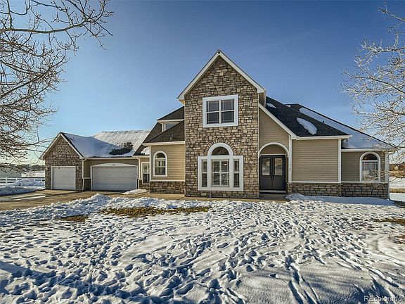 This beautiful custom traditional home sits on one of the nicest lots in the coveted Todd Creek neighborhood that backs to open space, trails and mountain views. Set back in a quiet cul-de-sac, the beauty of this home strikes you the moment you crest the hill to the long private driveway. You're met with stunning landscaping and mature trees that flow all the way to the doorstep. As you enter through the new, modern, double doors you're met with 12 ft. ceilings and brand new LVP floors that span through the inviting main living room and continues into the fully updated kitchen. Boasting custom, white, raised panel cabinets topped with elegant crown molding complimented perfectly by light quartz and lovely glass tile backsplash. Dine or gather in the front dining room with tray ceilings accented by white crown molding and huge windows bringing in tons of light from the front of the home. There is a cozy bonus room at the rear of the main level flowing out from the main living room separated by a gorgeous 2 way gas fireplace, where you're met with picturesque views off the oversized elevated deck with no shortage of entertaining space. Escape into your huge primary suite and 5-piece bathroom, jetted tub, his and her sinks and walk in closets. The fully finished walk out basement has 10 ft. ceilings, two large bonus spaces and full wet bar. The large basement bedroom with private walk out access has an ensuite allowing it to live as a 2nd primary suite! Head to the 2nd story where you'll find a cozy loft and nook space perfect for a home office, 3 large bedrooms, one of which has its own ensuite. Out back you'll follow the extended driveway to your 2,000 sqft. shop with 2 oversize doors. The shop is insulated, heated, plumbed for shop air and has tons of bench space and topped off with a 10K Bendpak Car lift! The shop doesn't excite you? Wait until you see the private raised garden beds for all you gardeners. Don't miss your chance to own what so many are looking for!