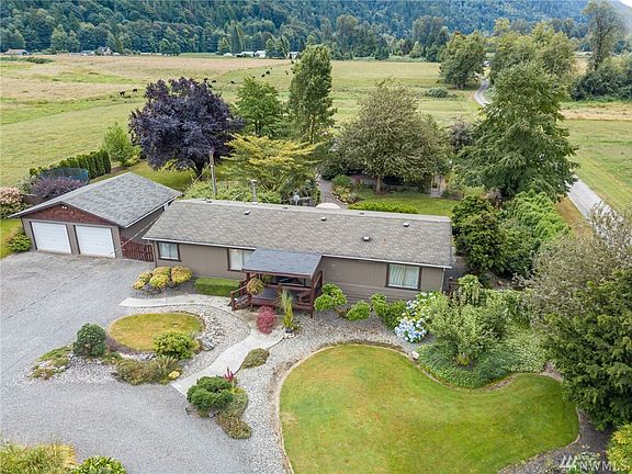 10 acres of private paradise surrounded by sheer beauty! This Country home is light, bright and has an open floor plan offering 2 bedrooms plus a den and 2 full baths. The kitchen has tons of space & is open to the great room featuring vaulted ceilings & wood burning stove. Full length deck off back for grilling or gazing at the picturesque yard w/ secret spaces & pond. Room for any type of animals, Go cart/quad track, walking distance to Centennial Trail & river. Don't dream a dream, buy one!