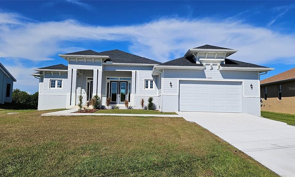 Welcome to your dream home in the heart of Port Charlotte! This brand new, never-lived-in residence offers an exceptional combination of luxury, space, and modern Florida living. Featuring a highly sought-after 4-bedroom, 3-bathroom split floor plan with over 2,000 square feet of meticulously designed living space, this home is perfect for family living and entertaining. Key Features: Open-Concept Living: The expansive great room boasts soaring vaulted ceilings, creating an airy and light-filled central hub. Premium Finishes: Enjoy a gourmet kitchen complete with solid wood cabinetry, a massive center island, and high-end stainless steel appliances. Owner's Retreat: The spacious primary suite features a generous walk-in closet and a luxurious ensuite bath with a dual vanity and walk-in shower. Ideal Orientation: The property has a desirable North front exposure, ensuring a sunny South-facing rear yard—perfect for lanai enjoyment year-round! Location Perks: Conveniently located near local shopping, dining, and a short drive to the beautiful Gulf Coast beaches and Port Charlotte's recreational facilities.
