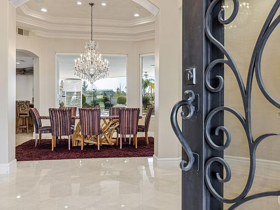 Introducing a masterpiece of custom design & meticulous craftsmanship, this extraordinary home offers a seamless blend of luxury & functionality. Step into the grand entrance, where your eyes are drawn to the stunning views of the dining room & sprawling backyard oasis, complete with a picturesque pool. Every detail of this home has been thoughtfully curated, evident in the exquisite cabinetry & crown molding that graces each room. The primary suite features a cozy fireplace, convenient wet bar & a dedicated desk area. The primary bathroom is a retreat with lavish amenities, including a fabulous walk-in closet. Entertaining is effortless in the expansive kitchen & bar areas, which flows into the grand room. Open sliding glass doors to extend your living space onto the covered patio, where you'll find a fire pit & a BBQ area. The pool & spa epitomize luxury. The property boasts a 3 car garage & an expansive shop with an attached ADU offering an additional 1 bdrm & 1 bath. PAID SOLAR.
